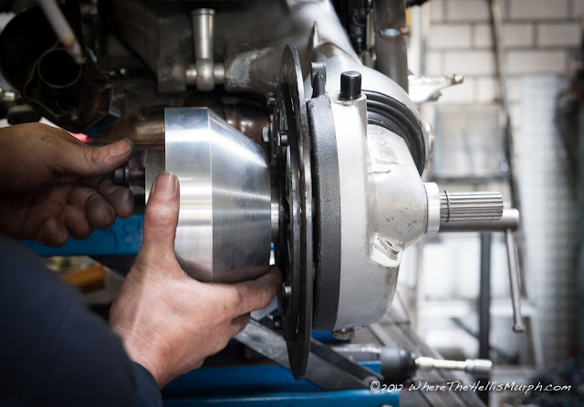 Ad Donkers did a really nice job on the sidecar swing arm, incorporating the machined down Suzuki Vitara hub.