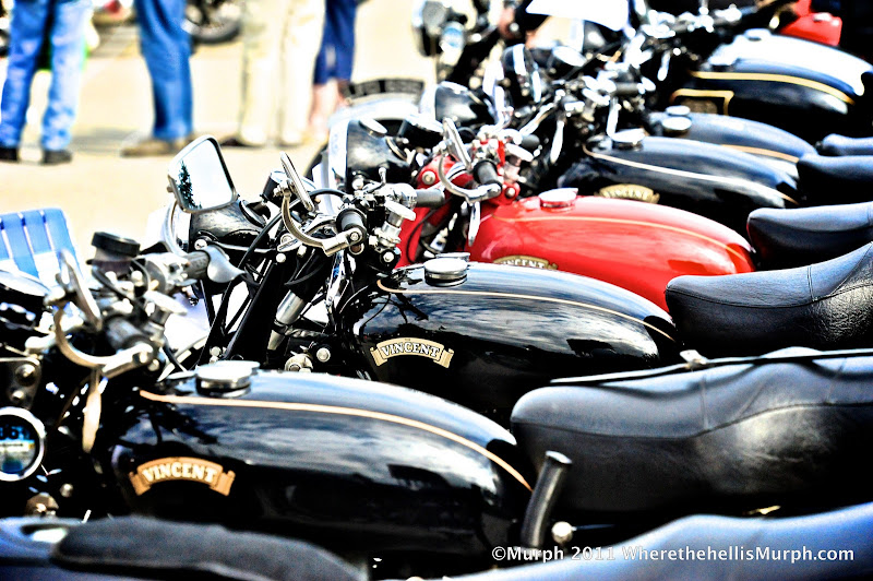 The "Gunga Din" fell into the "one or two" category.Maybe it's just me and my lack of knowledge of the Vincent,but I wasn't impressed much at all.The owner wasn't too happy with me getting too close to the bike to take pictures,and another Vincent owner was chastised for touching one of the tires on the bike................I mean,really?.